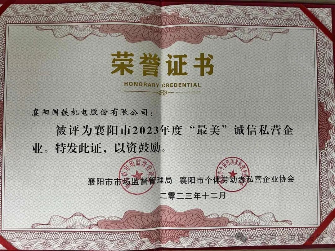 【喜報】國鐵機電獲“襄陽市2023年度‘最美’誠信私營企業(yè)”榮譽